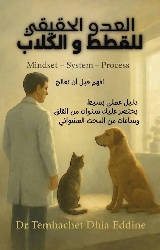 كتاب عملي ومجاني موجّه لكل مربّي القطط والكلاب، يركّز على الوعي البيطري، الوقاية، والتصرف الصحيح.